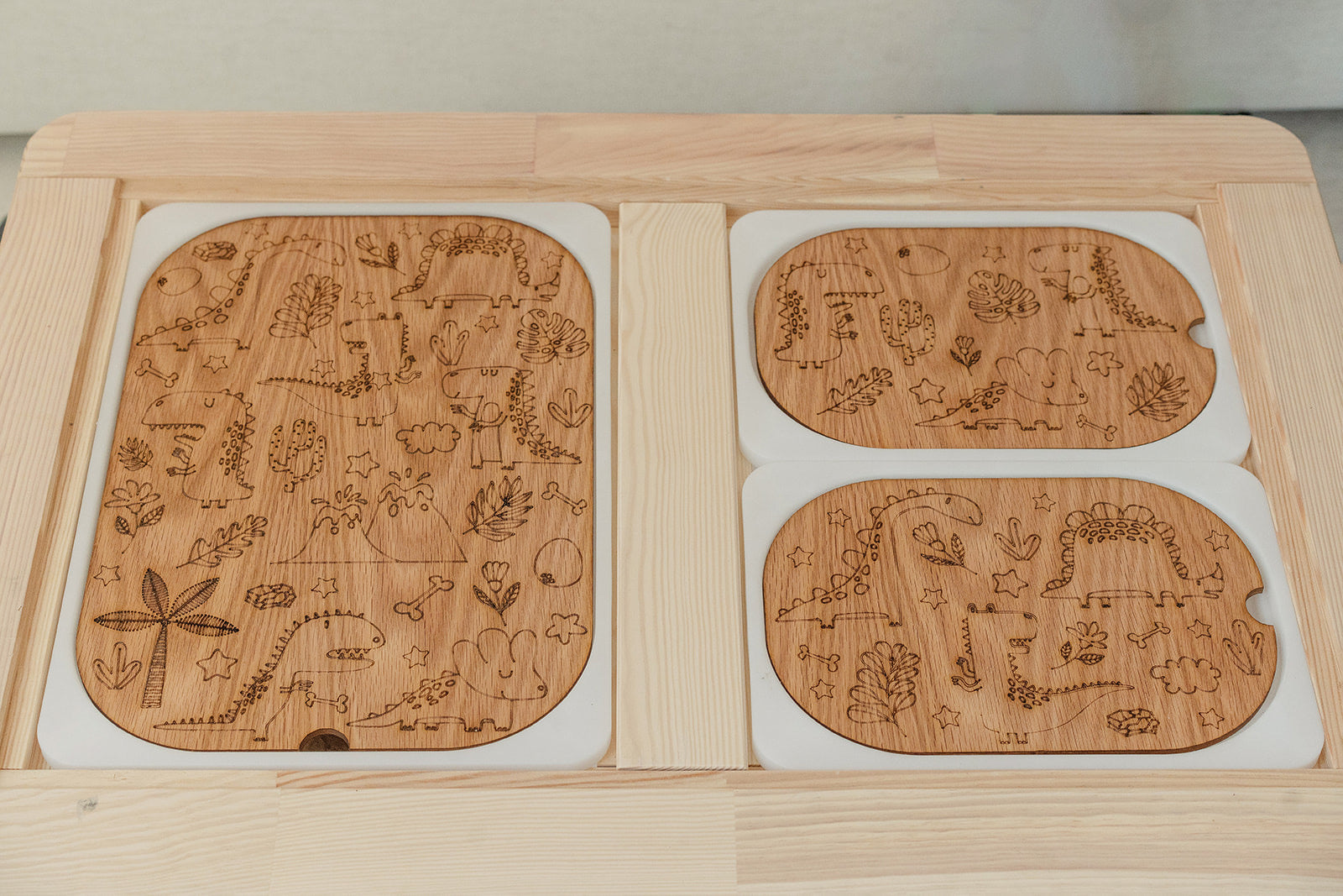 Don't have a flisat table and need sensory bin lids? Contact us to get them custom-made for your table.