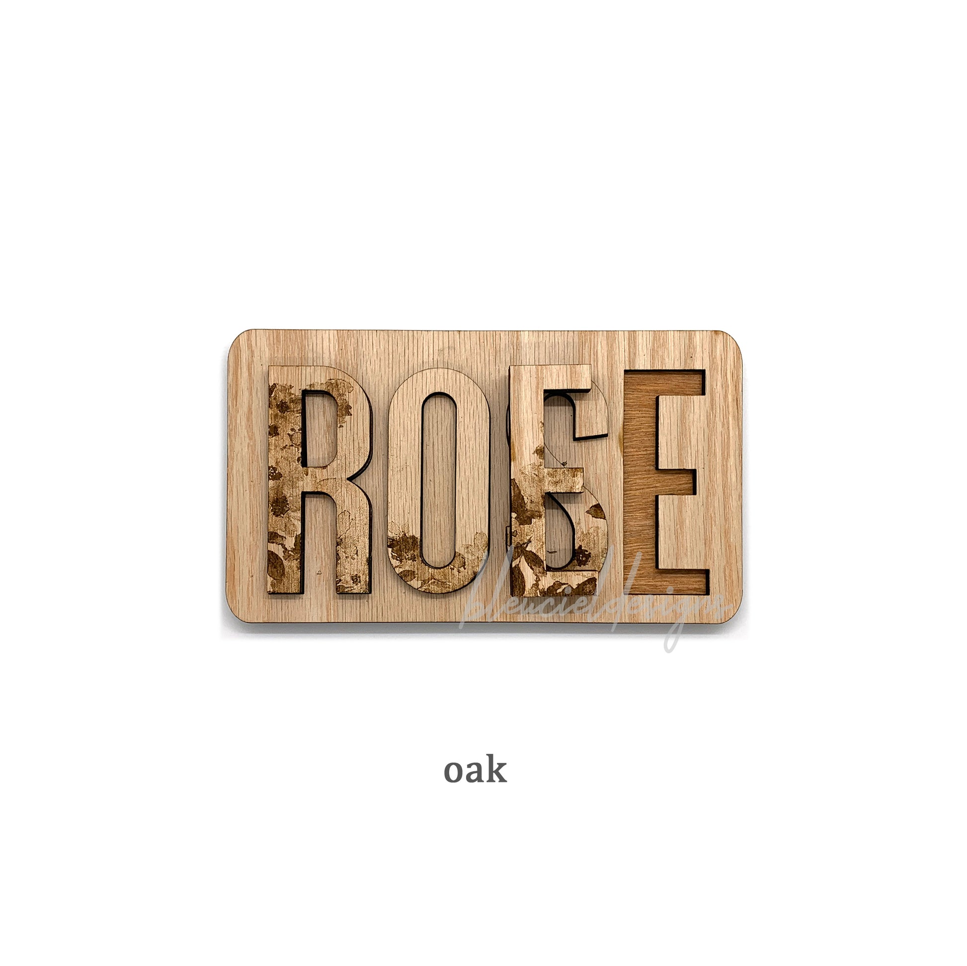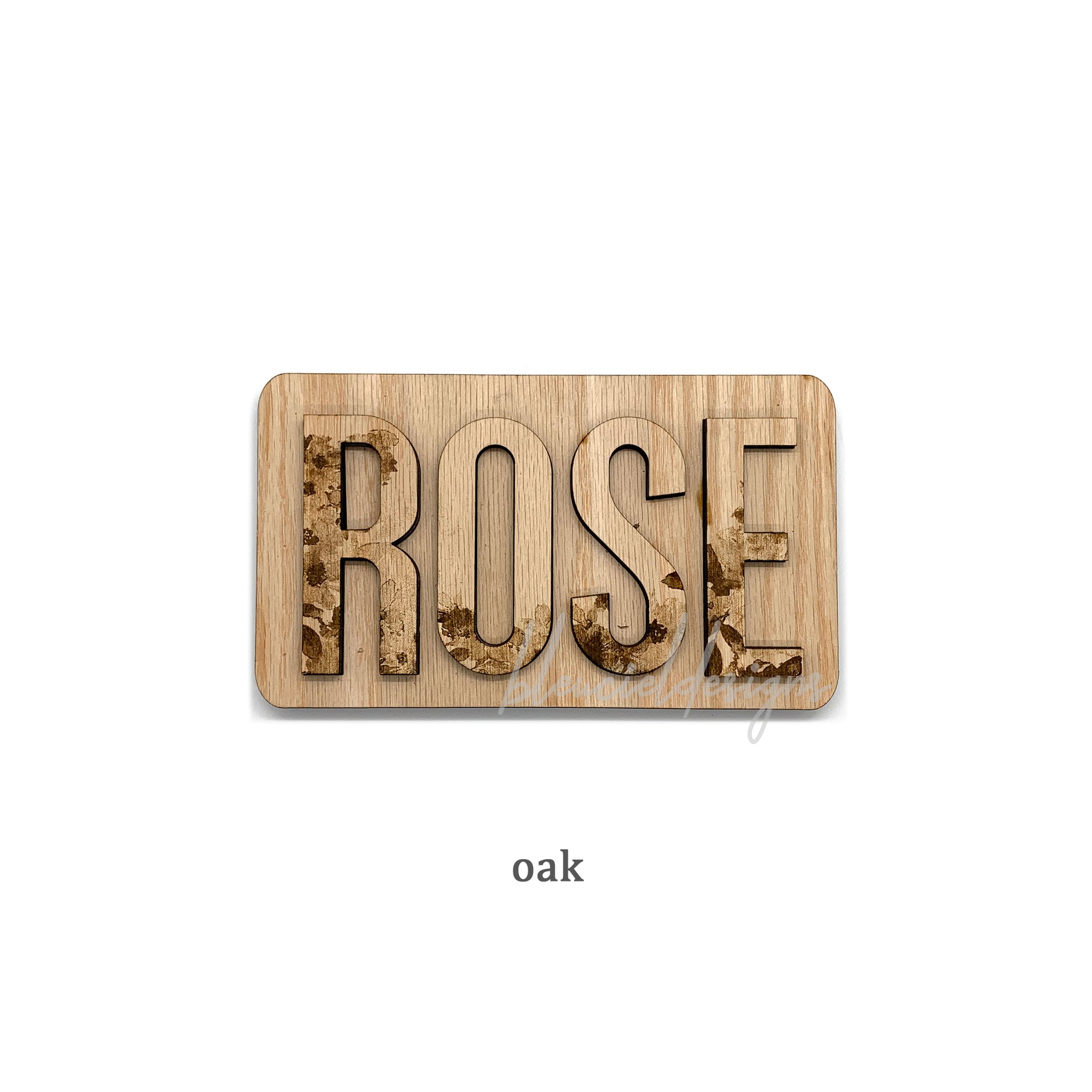 Our floral name block features a beautiful engraving of a watercolor floral pattern over the letters.