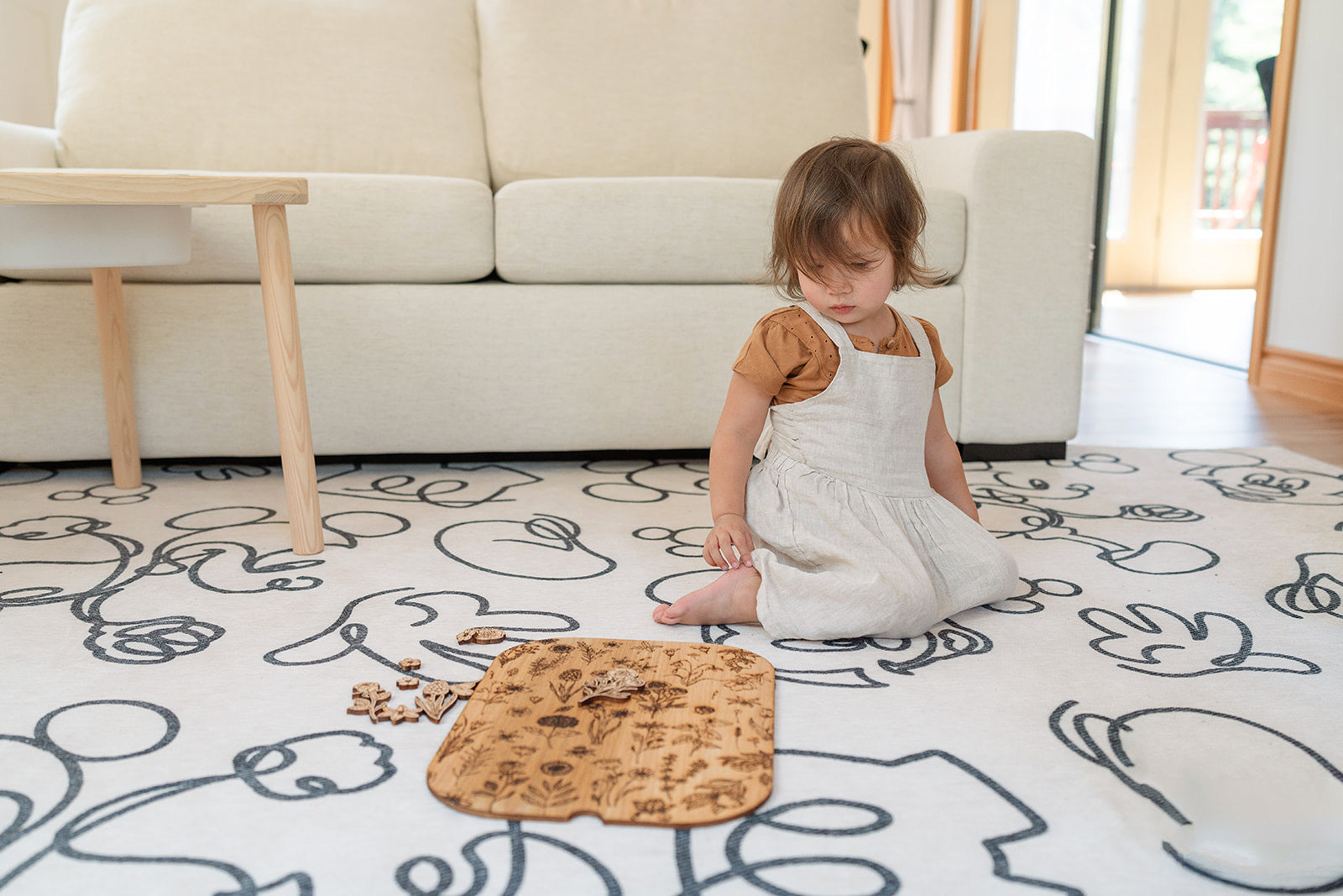 Made with two layers of premium walnut or oak veneered plywood — your choice! This heirloom-quality piece is laser-cut and laser-engraved. It's treated with food-safe oil to handle any mess your little one can throw at it and can handle rough play. This lid fits standard IKEA Trofast bins.